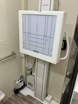 | ・検診車1台で胸部と胃部の撮影を実施でき、省スペースで検診を実施できる。 | ||