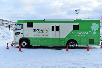 | 公益財団法人結核予防会は、一般財団法人日本宝くじ協会助成事業の助成により胃胸部併用検診車「しあわせ24号」を整備し、結核予防会青森県支部である当法人において、令和8年2月2日に引渡・披露式を行いました。 |